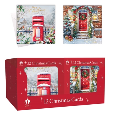 12 XMAS Cards, Boxed Post Box & Door