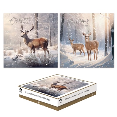 Cards Xmas 12 Square Boxed Cards - Deers