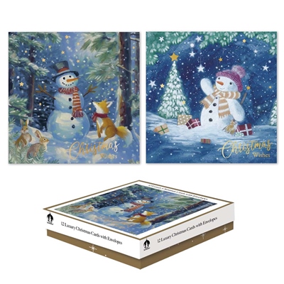 Cards Xmas 12 Square Boxed - Woodland Snowmen