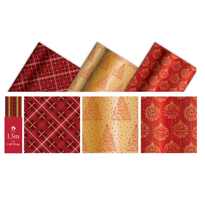 Foil Wrap XMAS 1.5m x 70cm - Gold & Reds